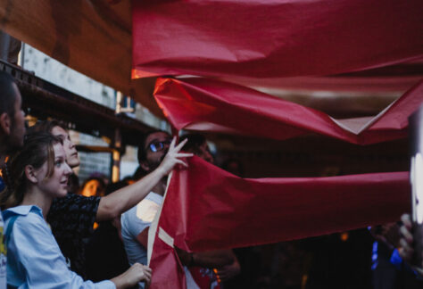 Studenti različitih univerziteta, koji su tokom nekoliko meseci razmenjivati rezultate istraživanja online, konačno su se sreli uživo u vreme trajanja Bijenala scenskog dizajna 2022 u Novom Sadu, u sklopu Kaleidoskopa kulture i Evropske prestonice kulture. Studenti su scenskim sredstvima publici predstavili finalni proizvod i kreirali zajednički iskaz u vidu performansa, kao odgovor na pitanje čemu ovi objekti služe, da li se mogu posmatrati van konteksta vremena nastanka i šta sa njima raditi danas. S tim u vezi, naslov izvođenja rada koji je predstavljen publici na Bijenalu scenskog dizajna nosi naziv Štampanje zajedničkih prostora, sa idejom da ukaže na emotivni i kolektivni karakter koje ove zgrade poseduju, kao i na koji je način moguće zadržati njihovu memoriju. Za predstavljanje projekta odabran je upravo razrušen prostor Kineske četvrti, koji tek treba da oživi, a gde je „umetnuta“ nova struktura, koja je takođe proizašla iz istraživanja, poslužila kao prostorni okvir za izvođenje ovog performansa.
